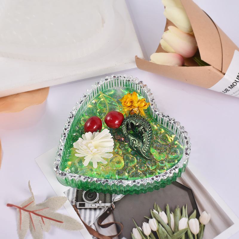 • Product description: Drip Resin Abrasive Heart Shaped Striped Dewdrop Tray Dish Love Water Pattern Storage Box Silicone Mold